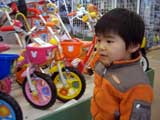 憧れの自転車を見て目を輝かせる長男