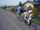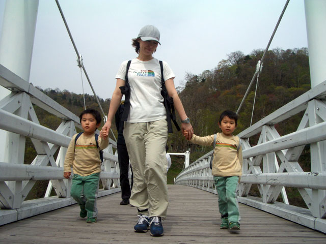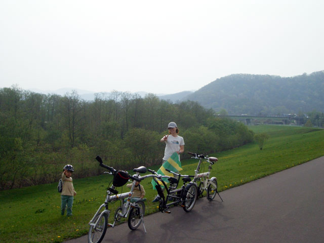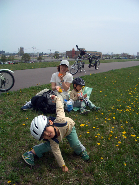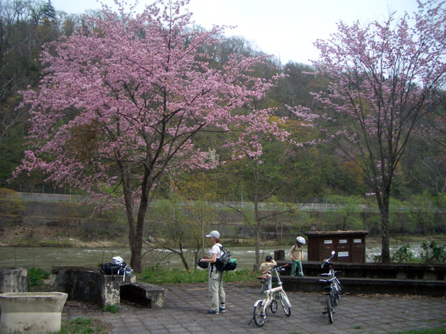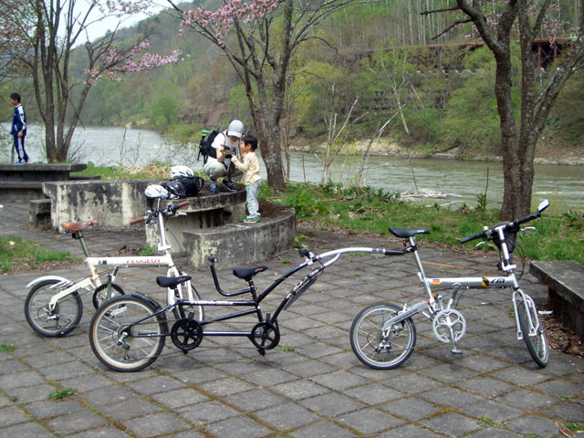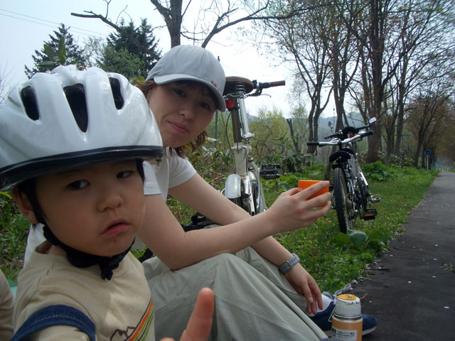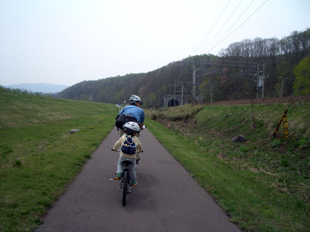 | 2008年5月3日(土) 神居古潭サイクリング(花見と鉄見) 天候:晴れ メンバー:旦那家 計4名 気温:20度 風速:2〜6m/s 装備:おにぎり弁当・お茶 コース: 自宅(10:50)〜神居古潭サイクリングロード起点(11:13)〜伊納駅(12:10)〜春志内(12:40)〜(13:10)神居古潭(14:10)〜春志内(14:55)〜伊納駅(15:20)〜神居古潭サイクリングロード起点(16:30)〜自宅(17:10) 総走行距離:約45km トレーラーバイクを導入して初めての長距離サイクリング。 コースは、今年数年ぶりに全面開通となった神居古潭サイクリングロード。 走行中の不安定さと子供達が寝てしまって落車しないか等の不安もあったが、なんとか無事に楽しむことができた。 期待通りの花見と、思いがけず行き交う列車見物(鉄見)も楽しめて充実した一日だった。 |