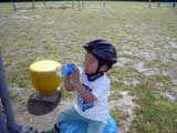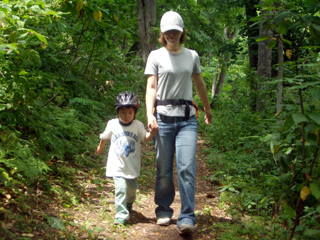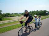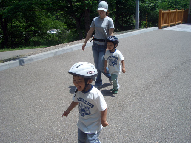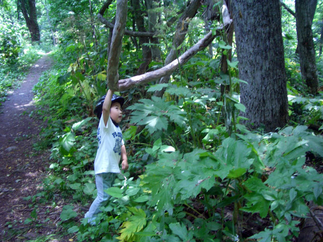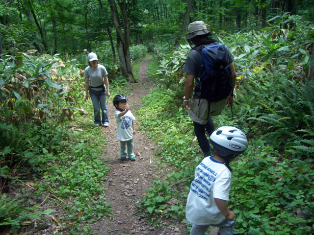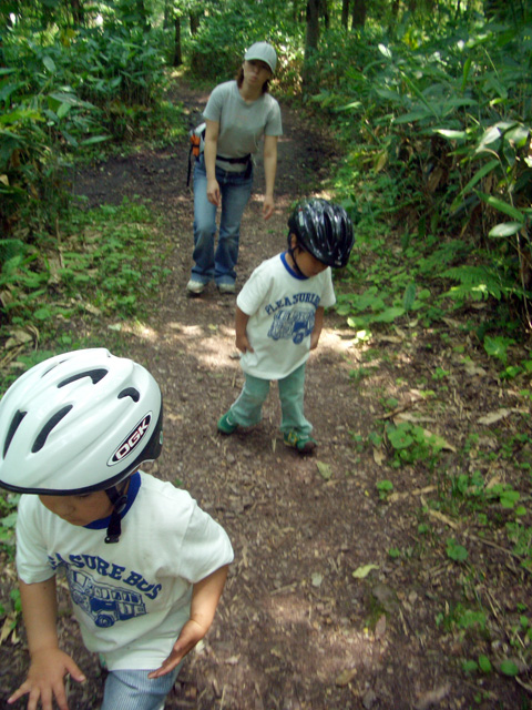 | 2008年6月29日(日) 嵐山登山(こんなに早く登れるようになりました) 天候:晴れ メンバー:旦那、ゆきこ、双子 計4名 気温:25.8度 風速:0〜4m/s 装備:おにぎり・サンドイッチ・お茶 コース: 上川郡鷹栖町嵐山 旦那の家(10:15)〜(11:15)旭川嵐山公園 北邦野草園(11:20)〜(11:45)嵐山山頂(12:10)〜(12:30)北邦野草園(12:43)〜(13:32)旦那の家 今シーズン初の嵐山。トレーラーバイクで山の麓まで行ってから登山。いつものパターンですが、ガソリン高騰の折、清々しいほど省エネなレジャーだと思います(^_^)。 最初に登ったとき(2007年8月)には山頂まで1時間8分もかかり、なだめたりすかしたりでヘトヘトになったものでしたが、今回はたったの25分で登頂できました。こういう形で成長が分かるのもいいですね。 |