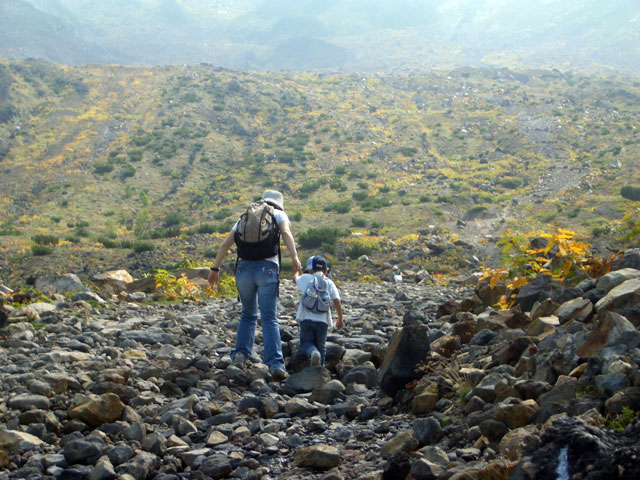 翌日は 望岳台〜白銀荘までの登山。我が子達にとっては初めての本格的な登山です。どれだけ登れるか心配していたのですが、元気よく最後まで歩き通してくれました。