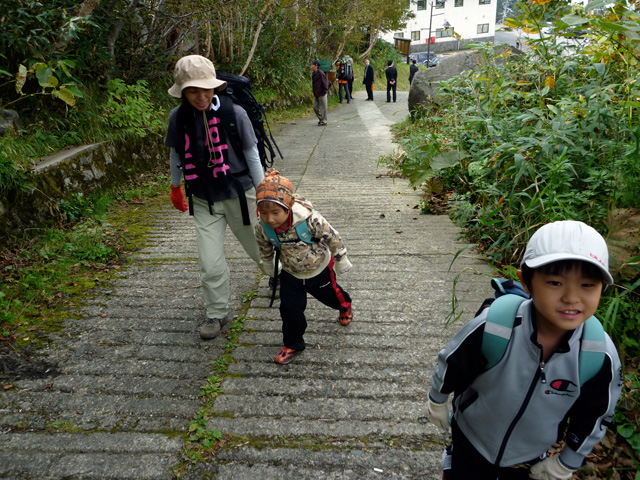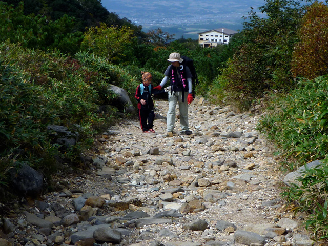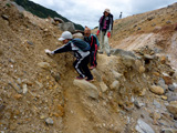 間もなく安政火口へ。増水があったとかで道はかなり荒れていたが、子供達はその方が楽しいようだ。