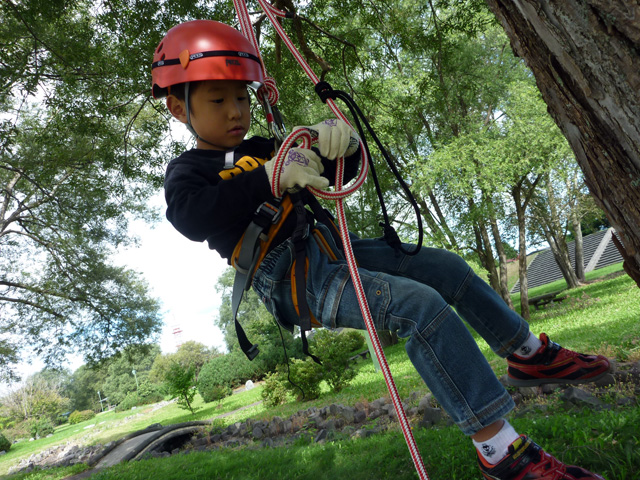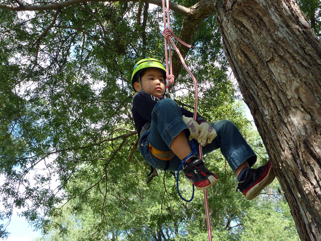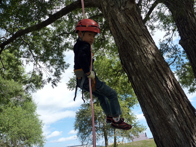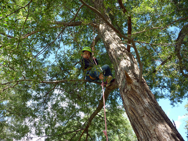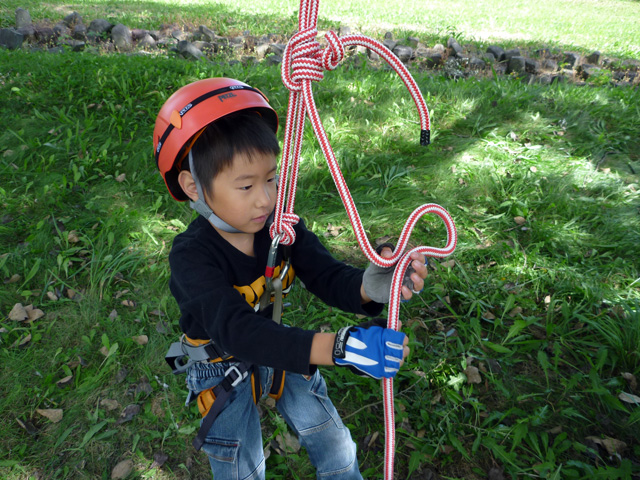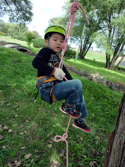 いろいろトラブルもありましたが、怪我無く済んでホッとしています。やっぱり経験を積まないとダメですね。これからも精進していく予定です。 小さな子供がツリーイングをする際には、スリップノットが結べるか、ブレイクスヒッチを操作する腕力があるかがポイントだと思いました。